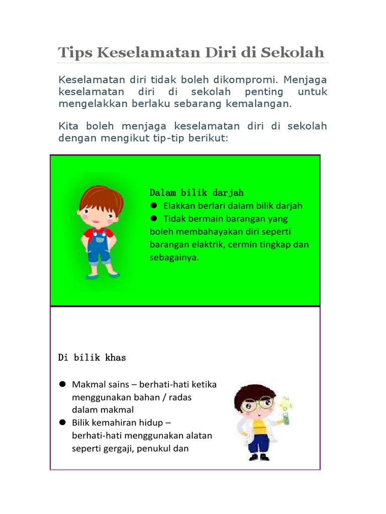 Pada pembahasan kali ini saya akan berbagi Info perihal hani. Cara-cara Menjaga Keselamatan Diri di Sekolah elakkan berlari bertolak-tolakan bergaduh tidak bermain Isi 1 barangan. Mendapat banyak faedah sepanjang kempen ini.
